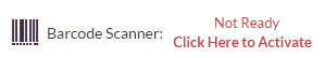 If a barcode scanner has been installed, click where it says Barcode Scanner: Not Ready. Click Here to Activate, then scan the barcode. The information appears in the Search field or an error message displays. If the barcode does not already exist in inventory and the user has the appropriate permissions, a prompt appears asking if the vaccine should be added to inventory. Note that the Administration > Properties > Registry Settings > Enable Barcode Tools option must be enabled in IWeb. See Barcode Scanning below. |